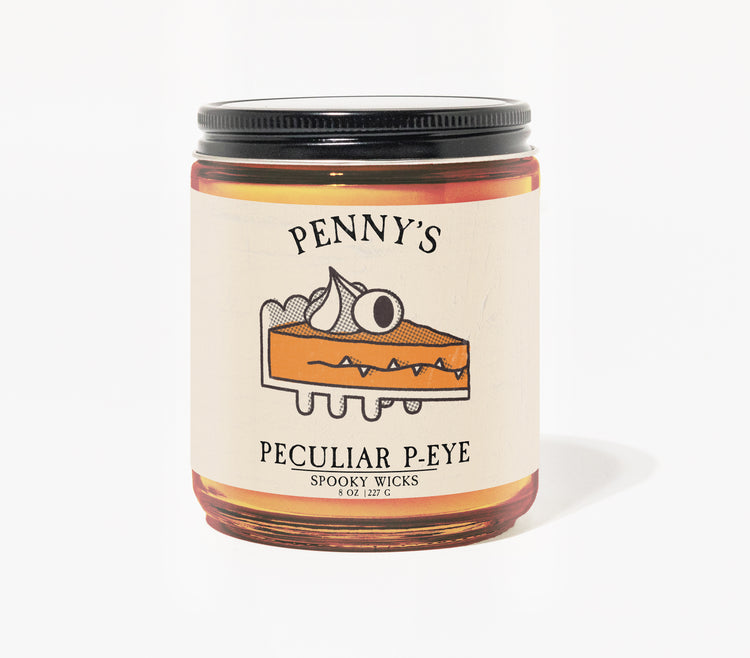 Penny's Peculiar Pie candle—a uniquely quirky scent that spins the familiar and the fantastical into one aromatic adventure. Go ahead, light it up. Let the peculiar allure of Penny's world spill into your own.